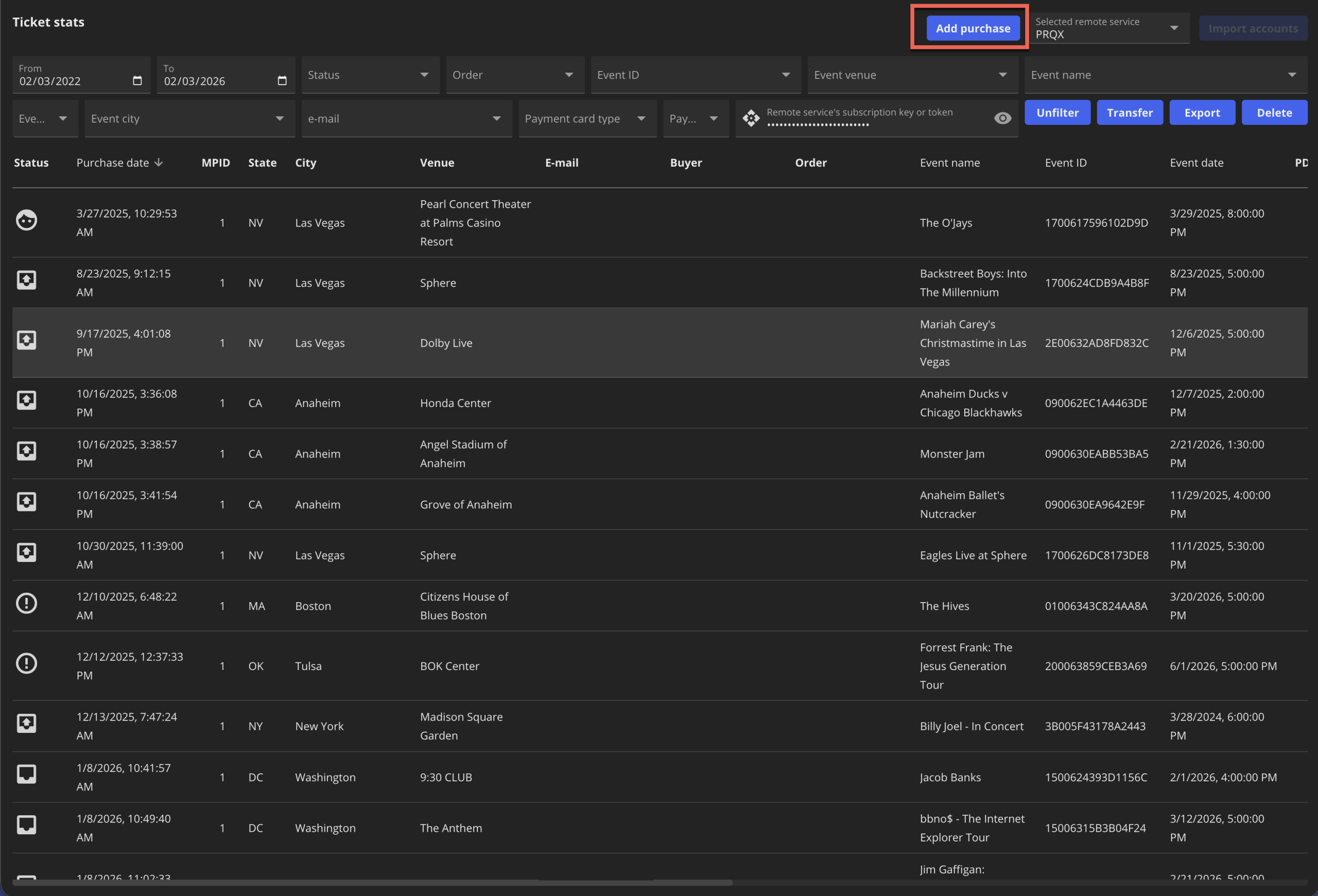 Did Insomniac Browser miss a purchase? You can now manually add any missing purchases. Once added, you can transmit them to ProcessorQX, 1Ticket, or Victory Live.